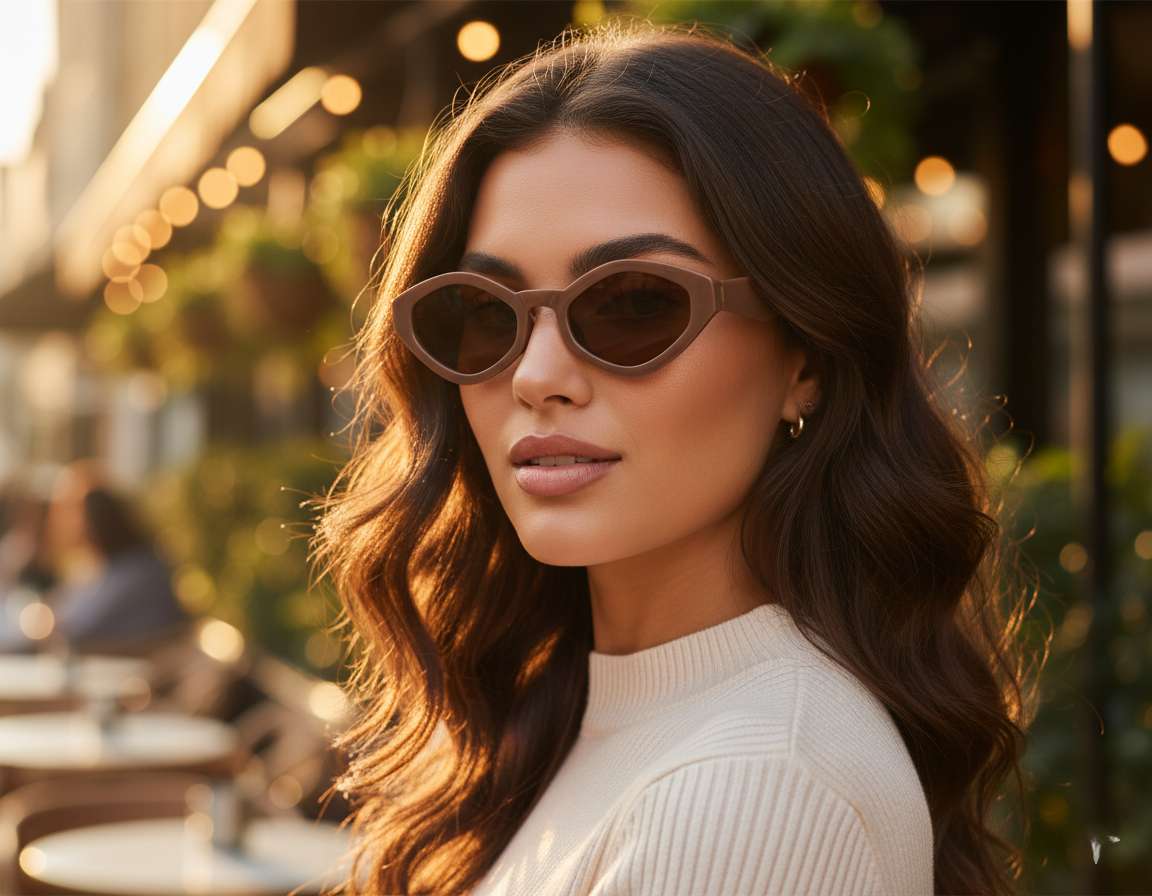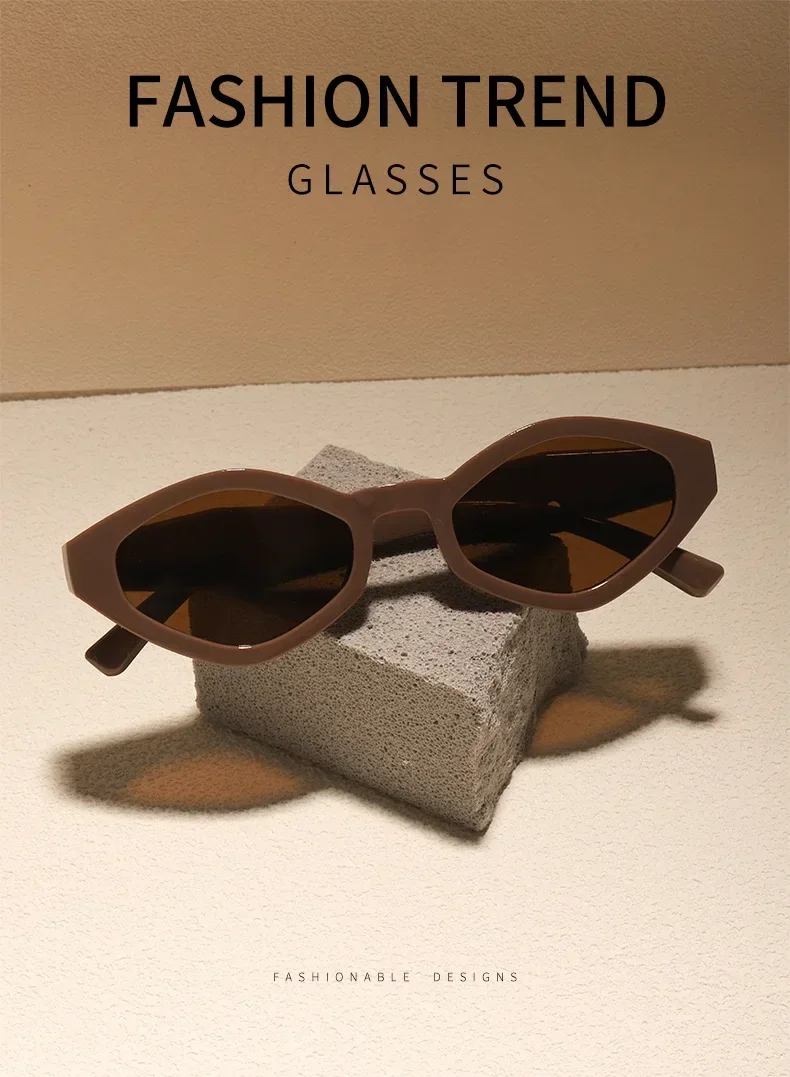 The geometric cat-eye shape with caramel-brown tinted lenses offers a touch of '70s sophistication with a bold, modern vibe. It's the perfect accessory to express your unique personality.